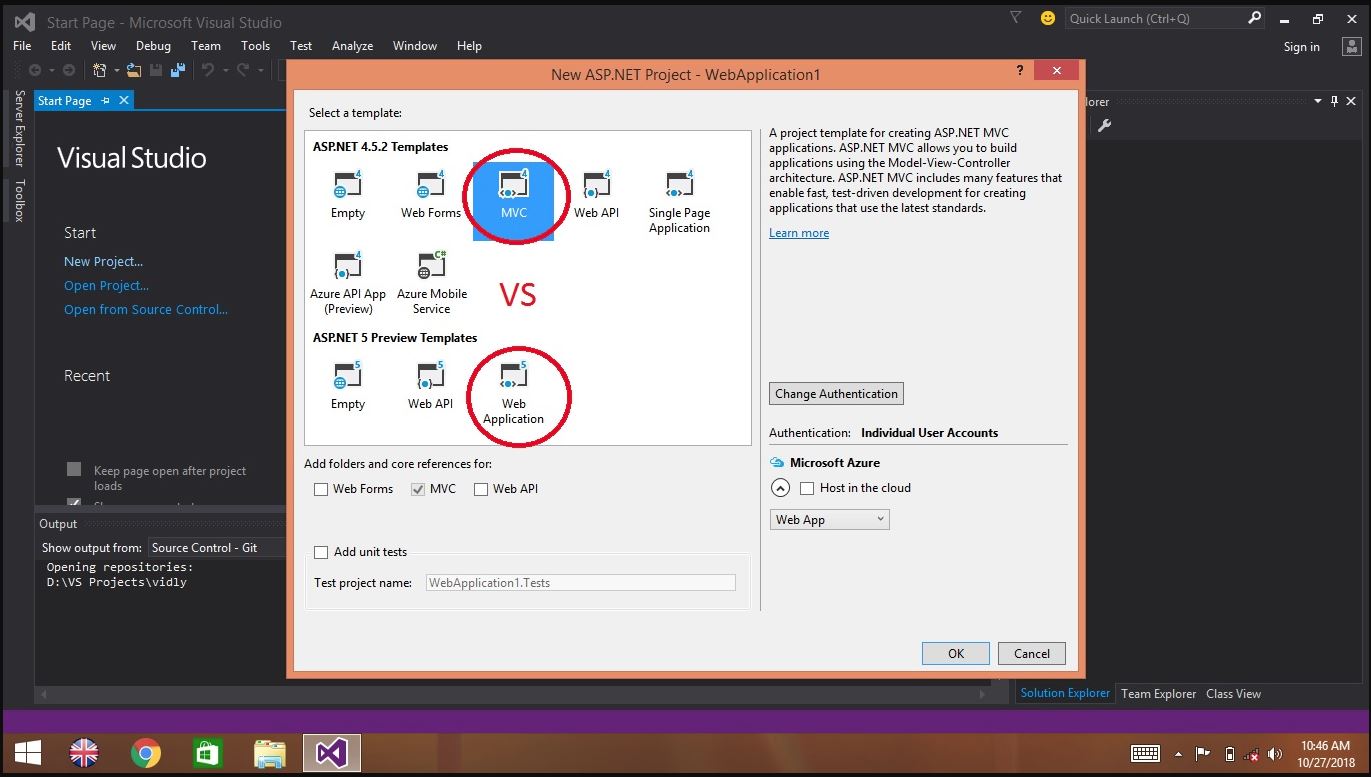 我是Asp.Net框架中的新手。我对Asp.Net web应用程序和Asp.Net MVC web应用程序模板感到困惑,如屏幕截图所示。