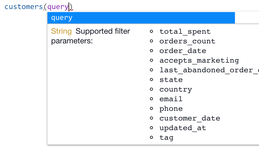 所以你试试简单的电话。得到一个产品,这就是Metafield。获取客户记录,然后是Metafield。如果您能够做到这一点,您就不会对文档和GraphQL查询的概念产生太大的挑战。一旦基本all工作,您可以在变量、游标、分页等中工作.但是,在一次性电话给你想要的东西之前,调试应该集中在最简单的调用上,而不是所有的东西和厨房的水槽。