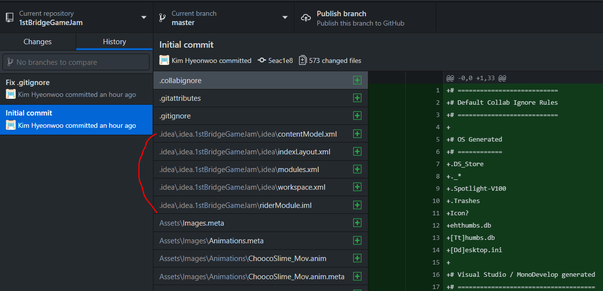 我目前正在为安卓开发一个游戏项目,在Windows10上使用。Git管理部门正在使用Github桌面。