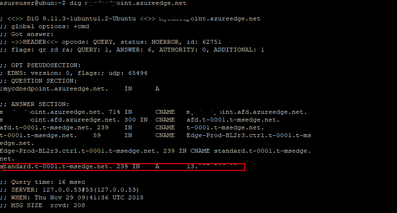 您可以使用Dig命令看到DNS解析。我在上测试这个。我正在使用标准微软的CDN端点。