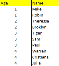 大家好,例子:-以上是我所拥有的数据。我想要分组年龄1-2和计数的值。在这个数据值为4的年龄组1-2。类似地,我希望分组年龄3-4岁,并计算值。这里,3-4岁年龄组的数值是6.