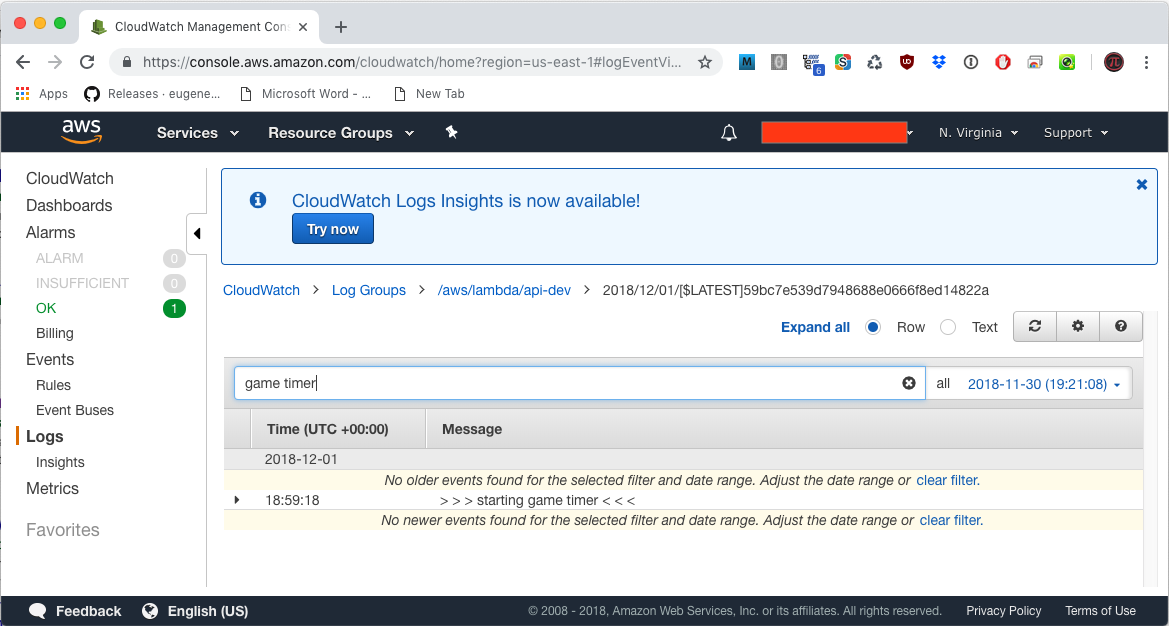 > aws logs get-log-events --log-group-name '/aws/lambda/api-dev' --log-stream-name '2018/12/01/[$LATEST]59bc7e539d7948688e0666f8ed14822a' --start-from-head > wtf.txt