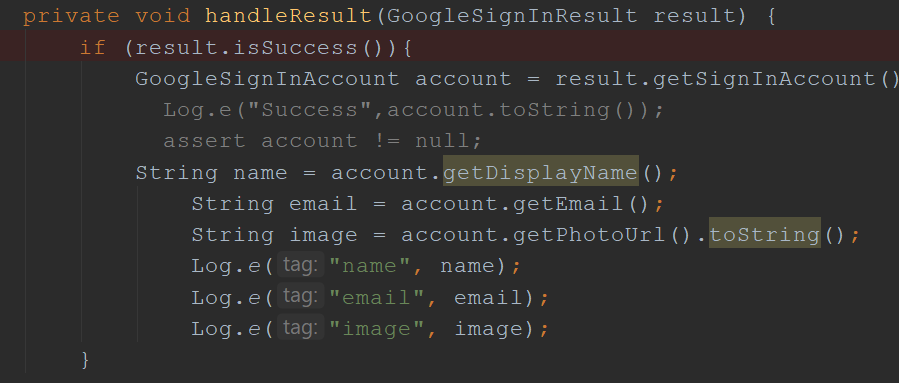 GoogleSignInAccount account = completedTask.getResult(ApiException.class);