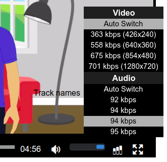 我正在创建一个清单来播放使用破折号的自适应WebM。一切都很好,但我需要的是语言名称/轨道名称,而不是比特率。它支持吗?如何更新/优化以支持这样的特性?