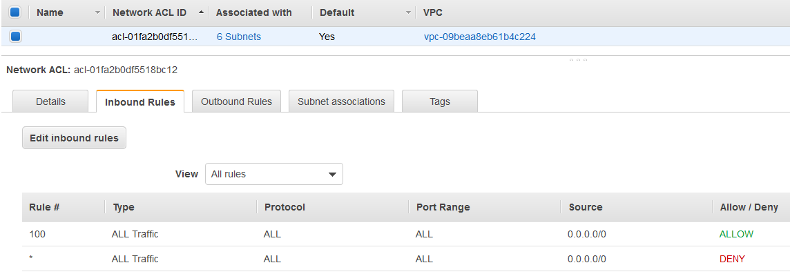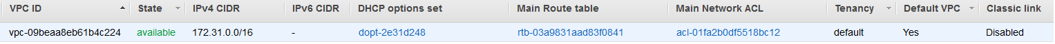 请注意,我使用AWS管理控制台来创建默认的VPC,并双重检查:
