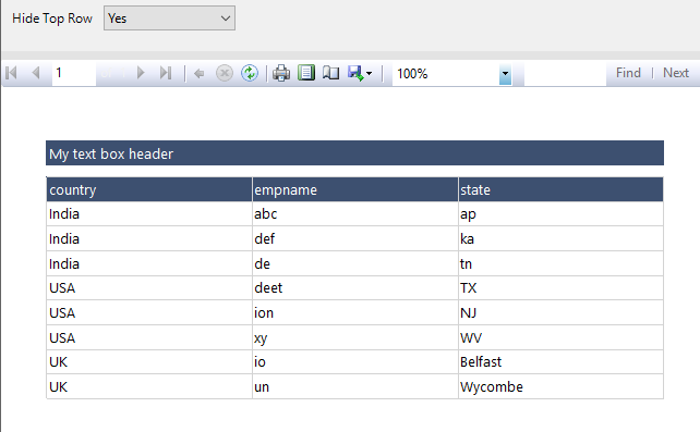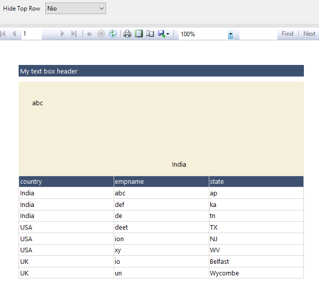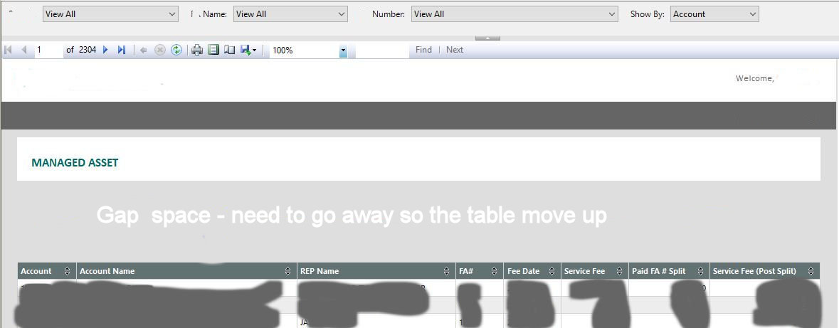但是,在默认情况下运行报表时,textbox会在标头和表之间创建一个空白(不是在参数中选择name ),这确实有问题。我的目标是一些人如何消除差距,以便表可以移动到右下方的标题。只显示名称何时是选择的参数。