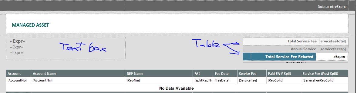 我有一个带有参数的报表来选择名称,还有一个文本框有表达式字段名。下面的文本框是dataset表。