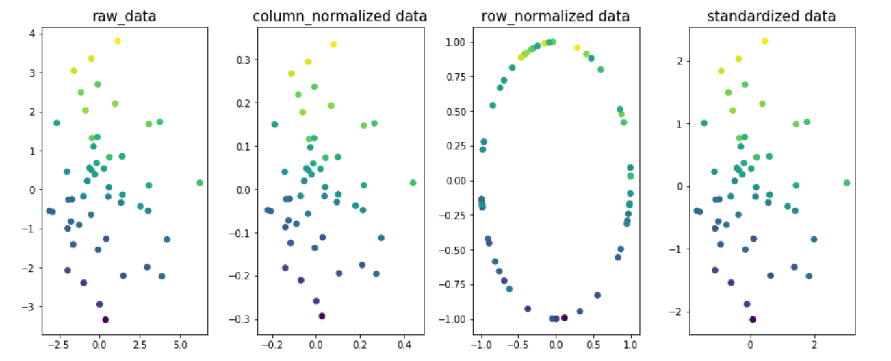 示例以了解规范化在数据的不同维度上的影响。让我们以二维x1 & x2和y作为目标变量。目标变量值在图中进行颜色编码。