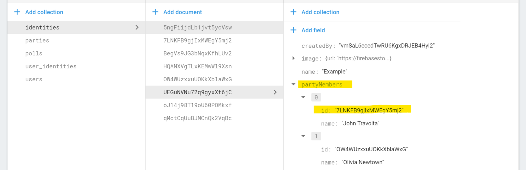 db.collection('identites').where("partyMembers", "array-contains", {name: "John Travolta"})实现这一目标的正确方法是什么,甚至可以使用Firestore吗?