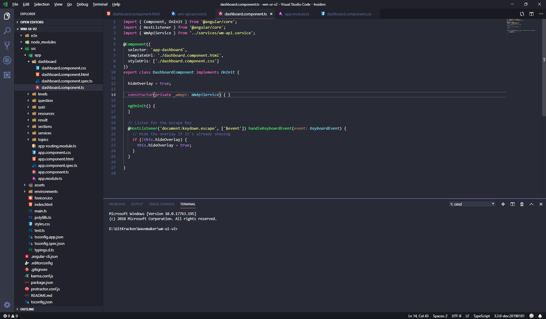 我一直在使用,因为它是beta版的,我最喜欢它的特性之一是在app中使用角度CLI的集成终端。自从我有了笔记本电脑之后,我就让它正常工作了,但是我在圣诞节中断的时候重新安装了Windows 10,结果显然不得不重新安装Visual代码。