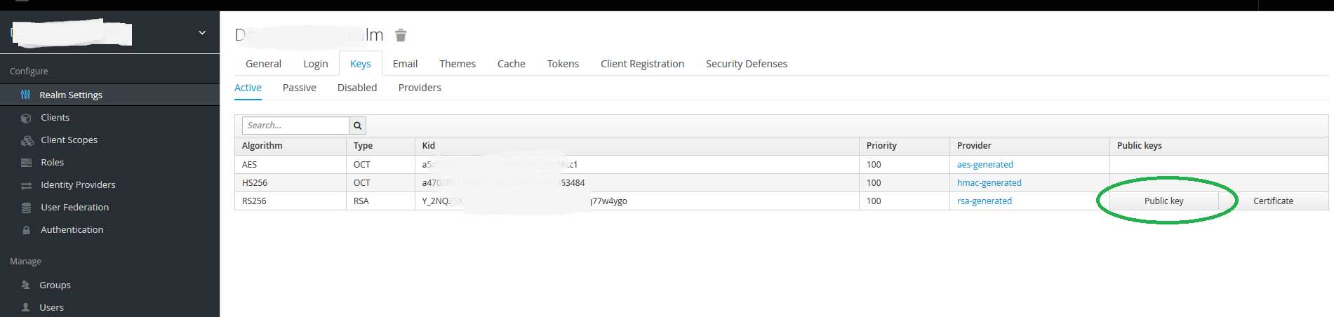 然而,如果我登录到keycloak管理页面,进入领域设置->键并单击公钥,弹出窗口显示公钥减去“-开始公钥--”和“-末端公钥-”页眉和页脚。硬编码,这使一切都能工作。