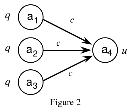 由此产生的概率分布应如下表“共同效应因果模型”下所示。Q是父母的无条件概率。