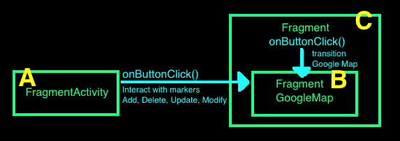 问题,FragmentActivity (称为A)如何与另一个片段(称为B)相互作用,而B依赖于片段(称为C),但C尚未被告知要制作B。