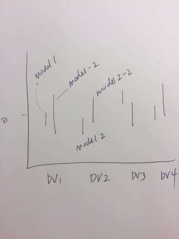 我的模型有不同的因变量(DVs),但使用相同的工具变量(IV),有两种不同类型的识别策略。简言之,我有: