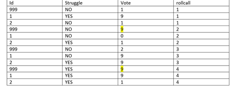 data <- data.frame(id, Struggle, Vote, Rollcall)
