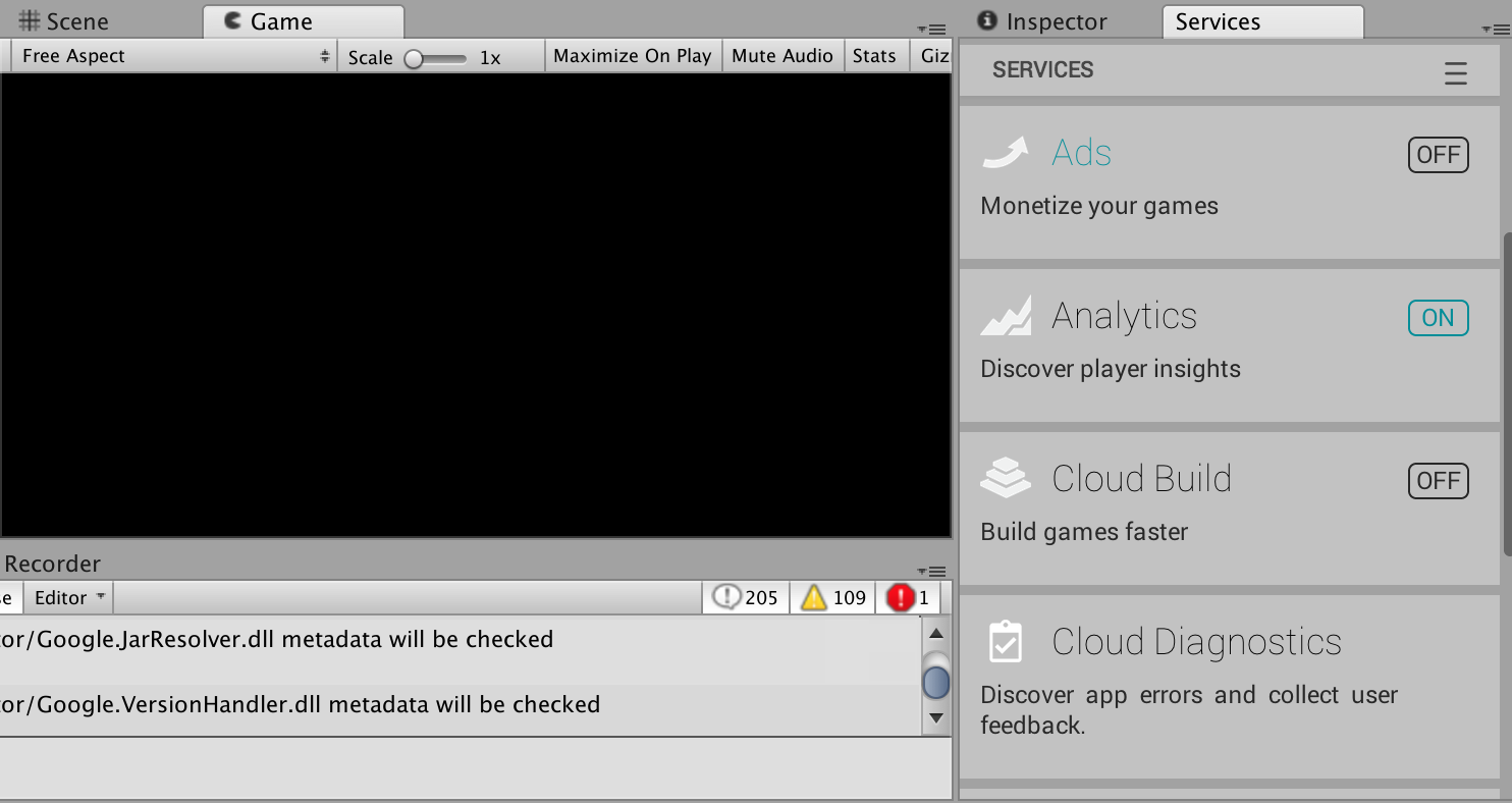 团结广告是在团结服务中内置的(见图)。我建议让这个项目在团结广告中工作,然后再将它嵌入到你的android应用程序中。