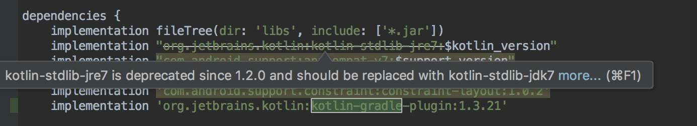 不过,我确实看到了这样的警告:kotlin-stdlib-jre7是不可取的: