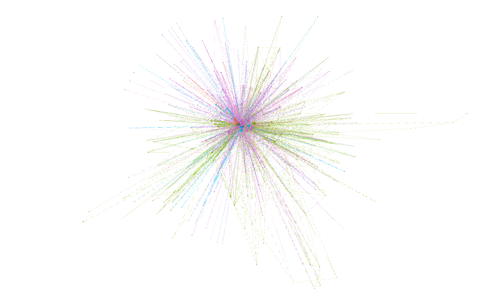 我有一个有向图,有481个节点和6817个边(权重是边出现的次数,否则它大约有400万条边)。图如下所示: