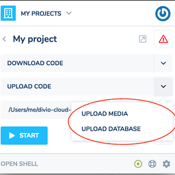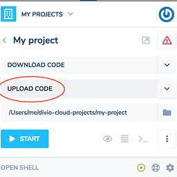 现在,您需要将代码推送(上传)到云中。在Divio应用程序中,上传代码将为您执行该操作。