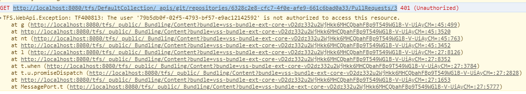 我尝试创建一个Azure DevOps扩展,获取当前的拉请求。但我面临一个未经授权的例外: