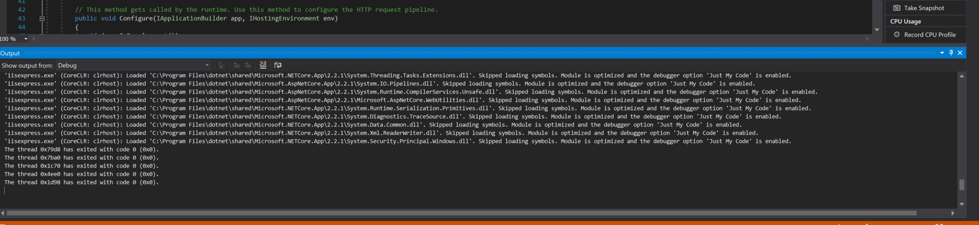 PS:我的问题在于我,而不是代码。密码没问题。我需要将.WriteTo.Console()更改为.WriteTo.Debug() (并获得正确的nuget包)。