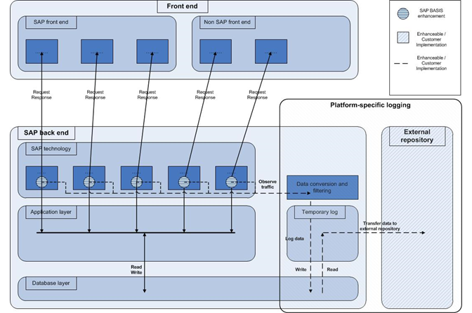 最初,日志暂时存储在SAP中,可以通过事务/LOGWIN/SHOW_LOG查看,之后您可以通过事务/LOGWIN/TSF_TO_EXT将必要的日志记录转移到外部存储库(您应该提前设置)。
