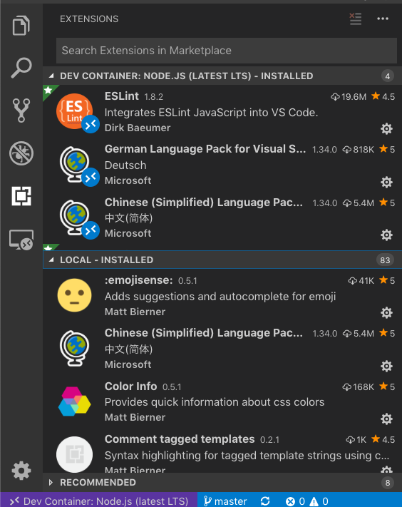您还可以通过设置以下方法,配置应该在SSH或dev容器遥控器上自动安装的扩展列表: