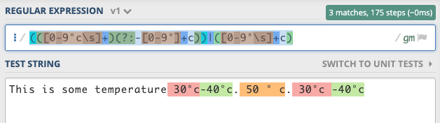 regex = r"(([0-9°c\s]+)(?:-[0-9°]+c))|([0-9°\s]+c)"
