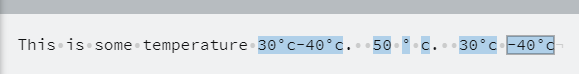 test_str = "This is some temperature 30°c-40°c. 50 ° c. 30°c -40°c"