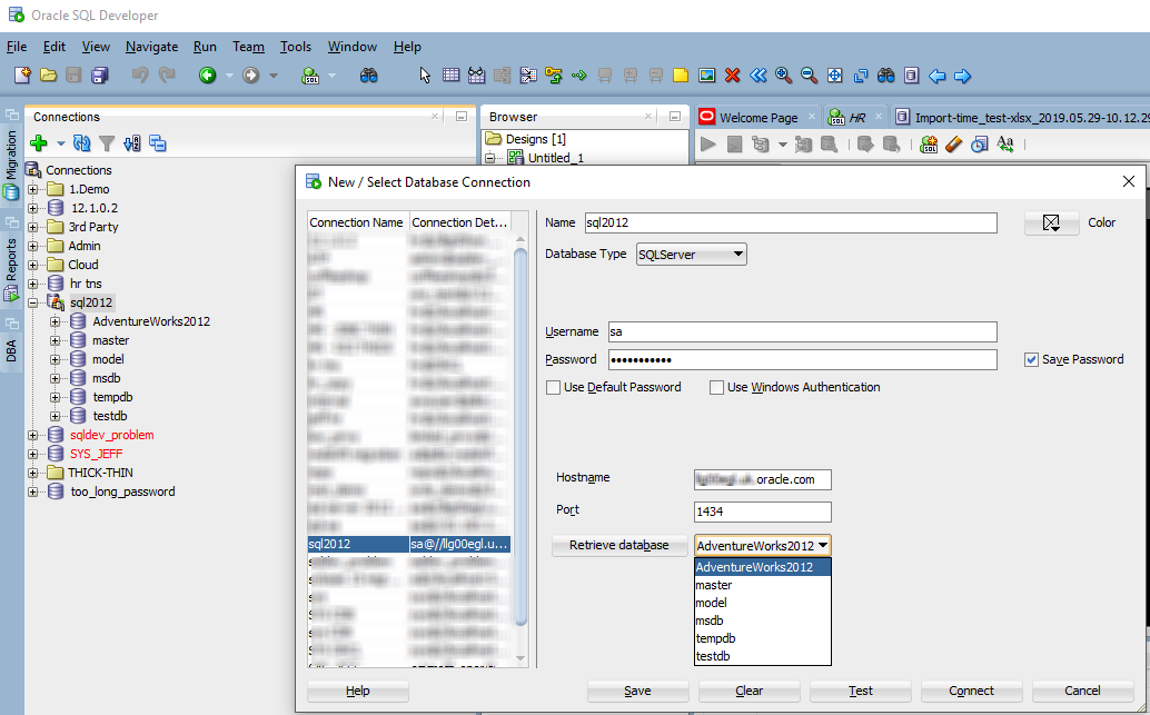 这是使用的19.1版本连接到海外的SQL2012实例。