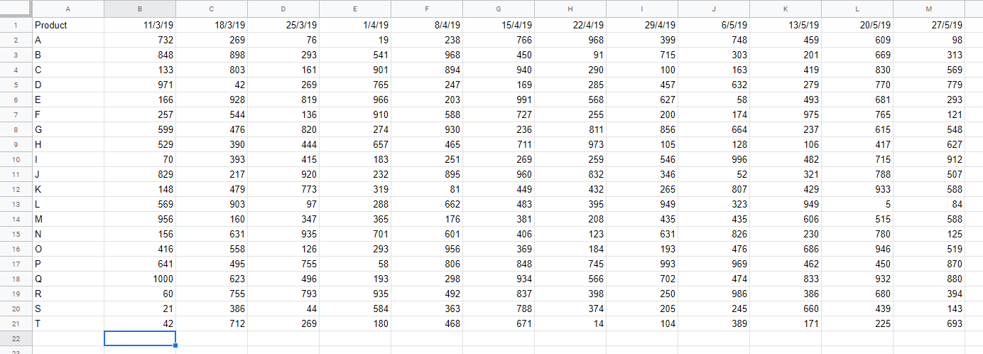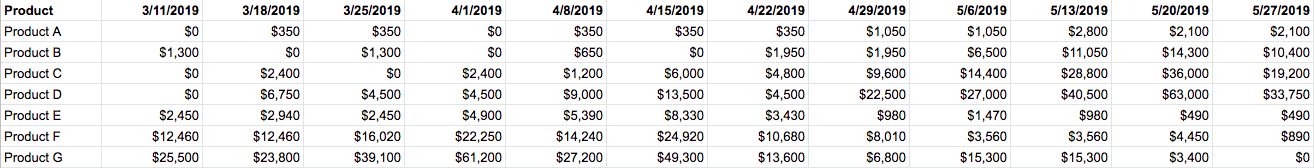好吧,在表被分享之前,我生成了一些随机数据,结果是上周是最好的一周: