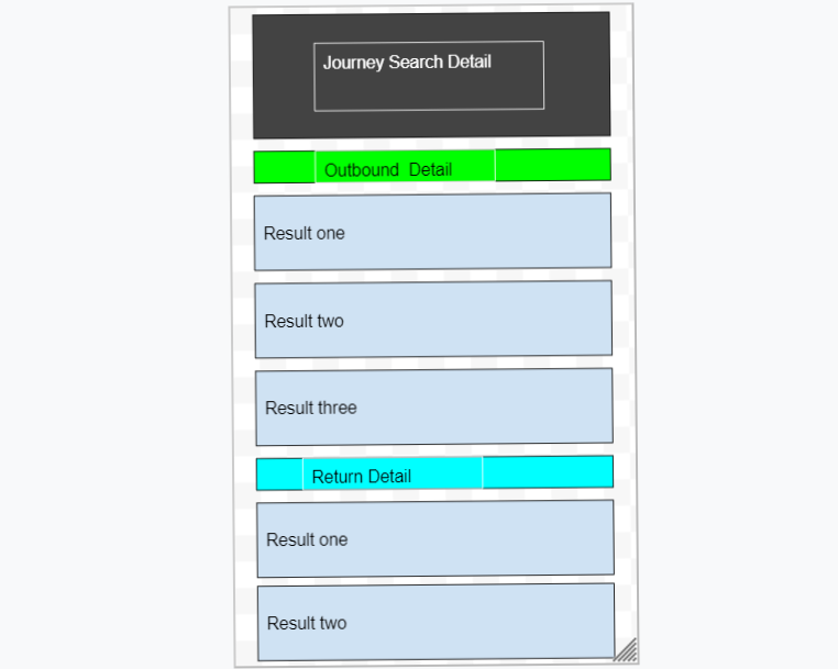 我在一个列表构建器中添加了“旅程搜索详细信息部分和出站部分,以及outboud结果”。wrapContent保存旅程搜索详细信息部分和出站部分。