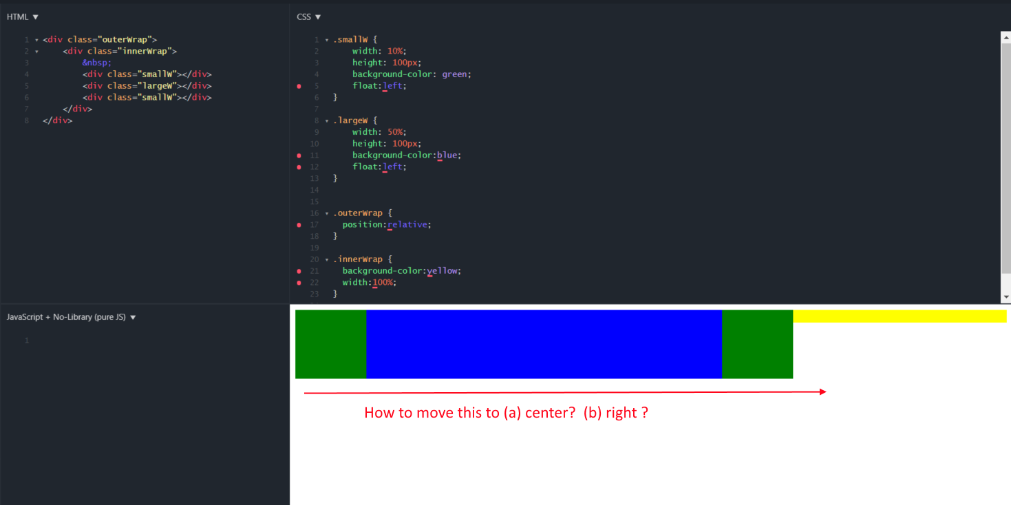 如何将div块移动到a)中心和b),对吗?也就是说,我希望将innerWrap及其内容移到中间或右边。