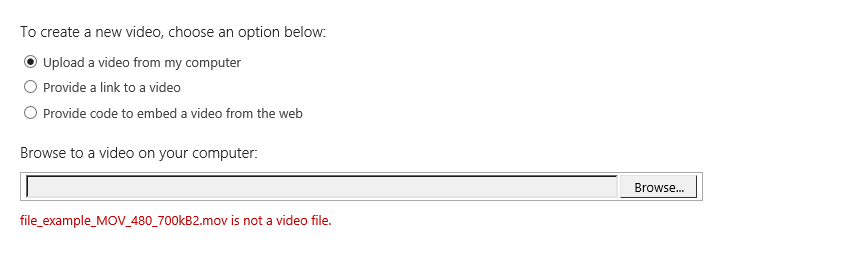 您可以将.mov文件上载到SharePoint资产库中,但默认情况下它将被标识为图像,而不是,因此不能将其内容类型更改为无人驾驶视频。