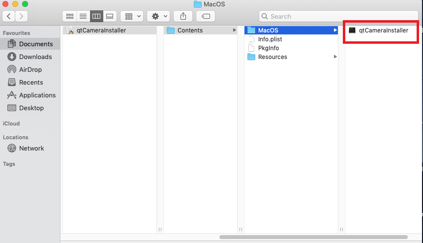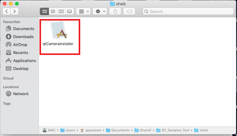 我开发了一个用于MAC平台的摄像头应用程序。该应用程序可执行和框架依赖被捆绑到一个名为QtCameraInstaller (使用Qt开发)的安装程序应用程序中。这个安装程序应用程序,执行解压缩过程,以提取压缩文件。
