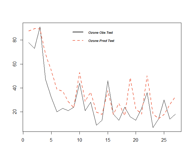 legend("top", legend = c("Ozone Obs Test", "Ozone Pred Test"),