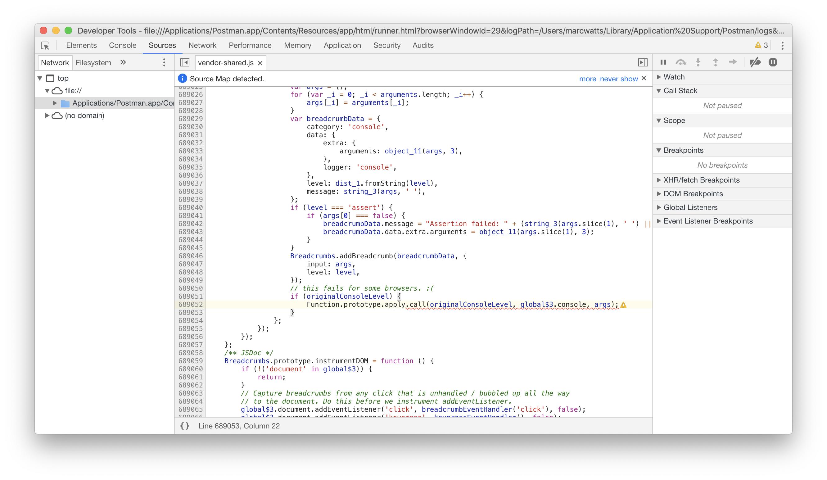 从控制台上看,在下面所示的行中有一个错误: