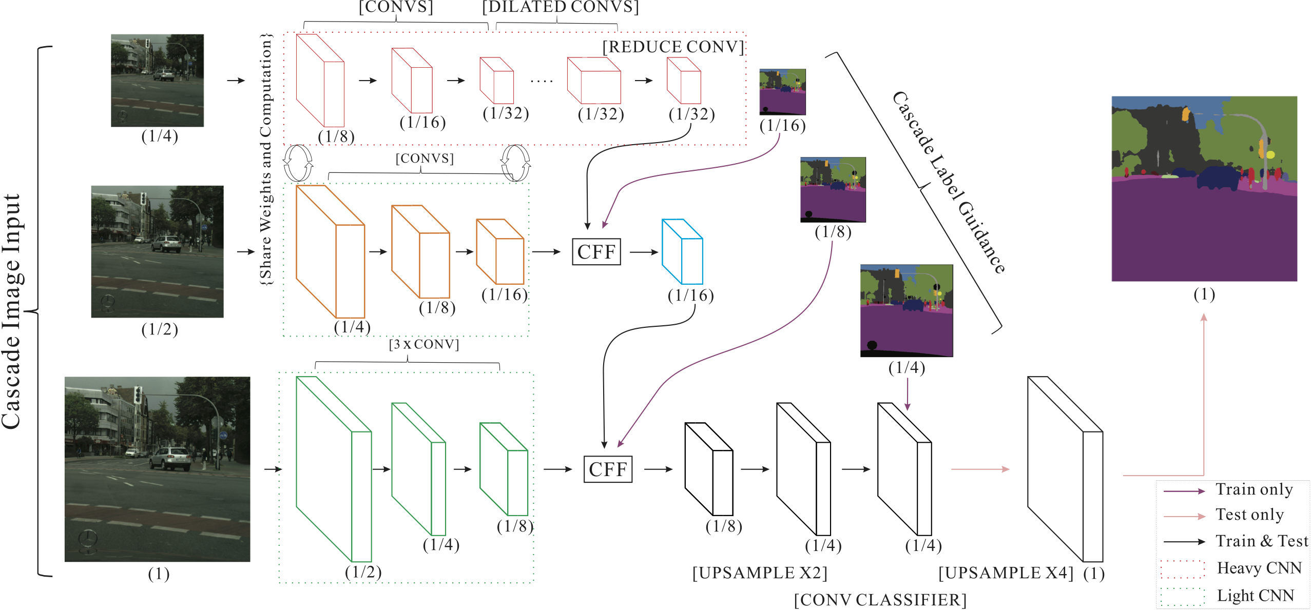 它有三个分支。分辨率1/4分支是一个预先训练的网络,具有节省的权重。分辨率1/2分支是1/4网络的一部分,与1/4 (我不知道如何)分辨率1分支共享权重是我的定制。