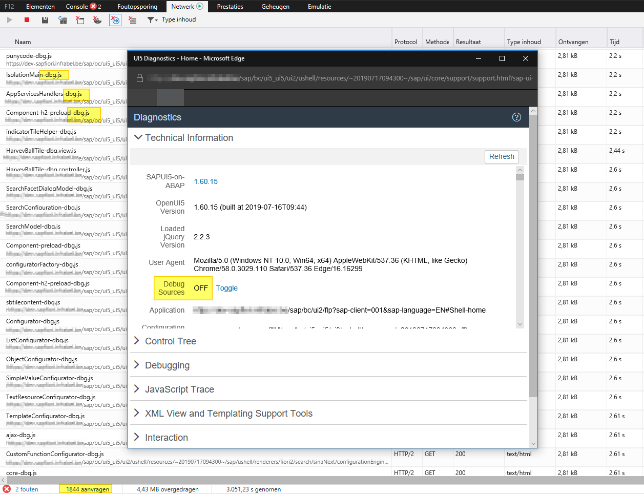 打开边缘中的“开发人员”菜单(F12)立即触发边缘开始下载所有源图文件。我指的是所有单独的js文件,例如sap/m/Button-dbg.js。