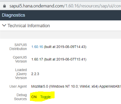 在应用程序中,打开STRG+ALT+SHIFT+S来打开UI5开发。工具,然后->技术设置->关闭调试源。