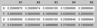 'X5': [0.39, 0.2, 0.17, 0.13]}