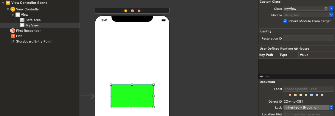 }在故事板中,我将视图类设置为myView,因此它是可见的。