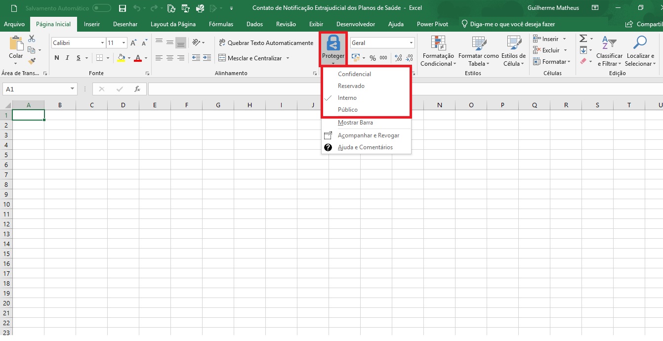 语言为葡萄牙语(巴西),按顺序排列:保密、保留、内部、公开。