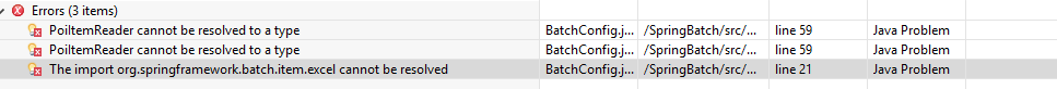 我无法导入org.springframework.batch.item.excel.poi.PoiItemReader.它显示了以下错误。