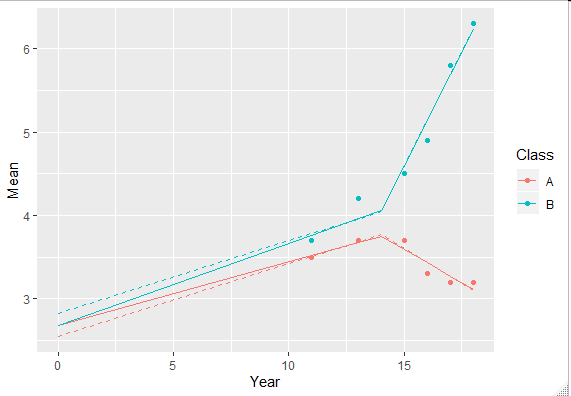 geom_line(aes(x = Year, y = Pred, colour = Class))