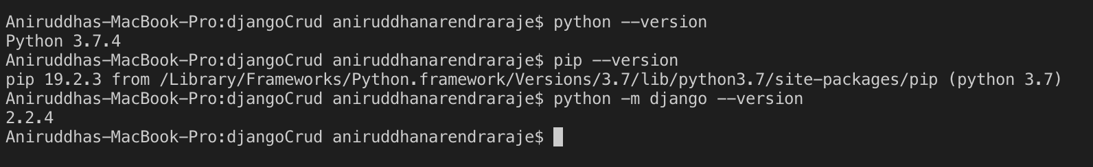 Aniruddhas-MacBook-Pro:python_django aniruddhanarendraraje$ python --version