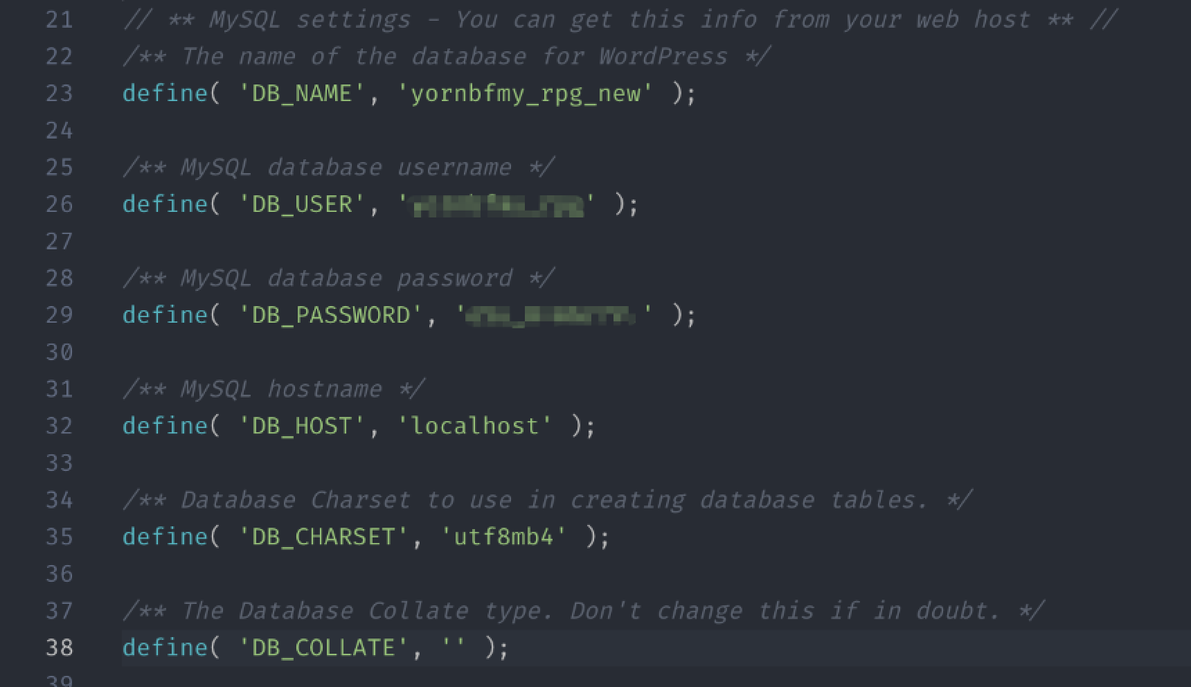 然后导航到站点的文件,并更新wp-config.php以使用我希望它使用的服务器。