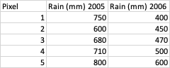 对于我的ROI,我已经有了2005到2009年间每个像素的历史数据,其中包括: