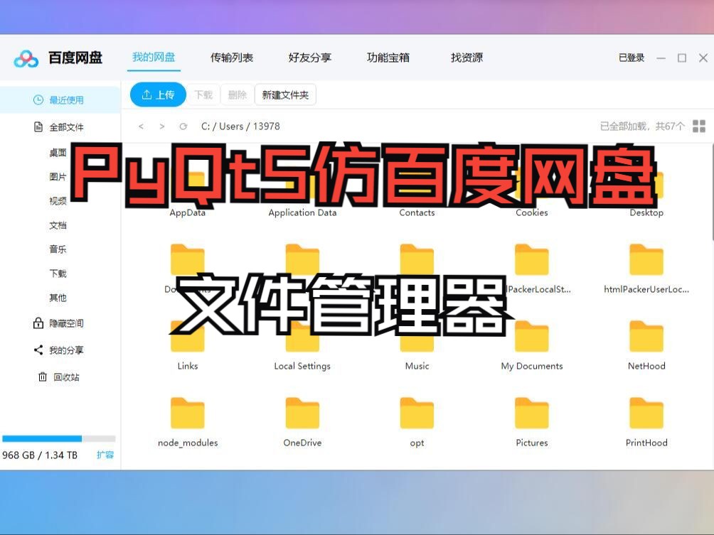 哈喽大家好呀,今天继续给大家带来我使用PyQt5开发的软件,本次给大家打来的是一款仿百度网盘的本地文件管理器,这款软件UI样式模仿了百度网盘的样式,包含多功能文...