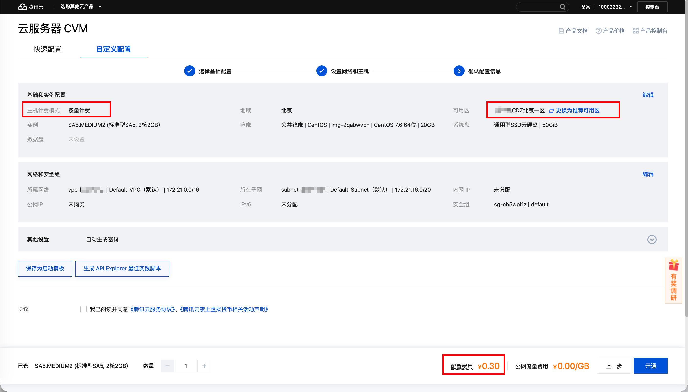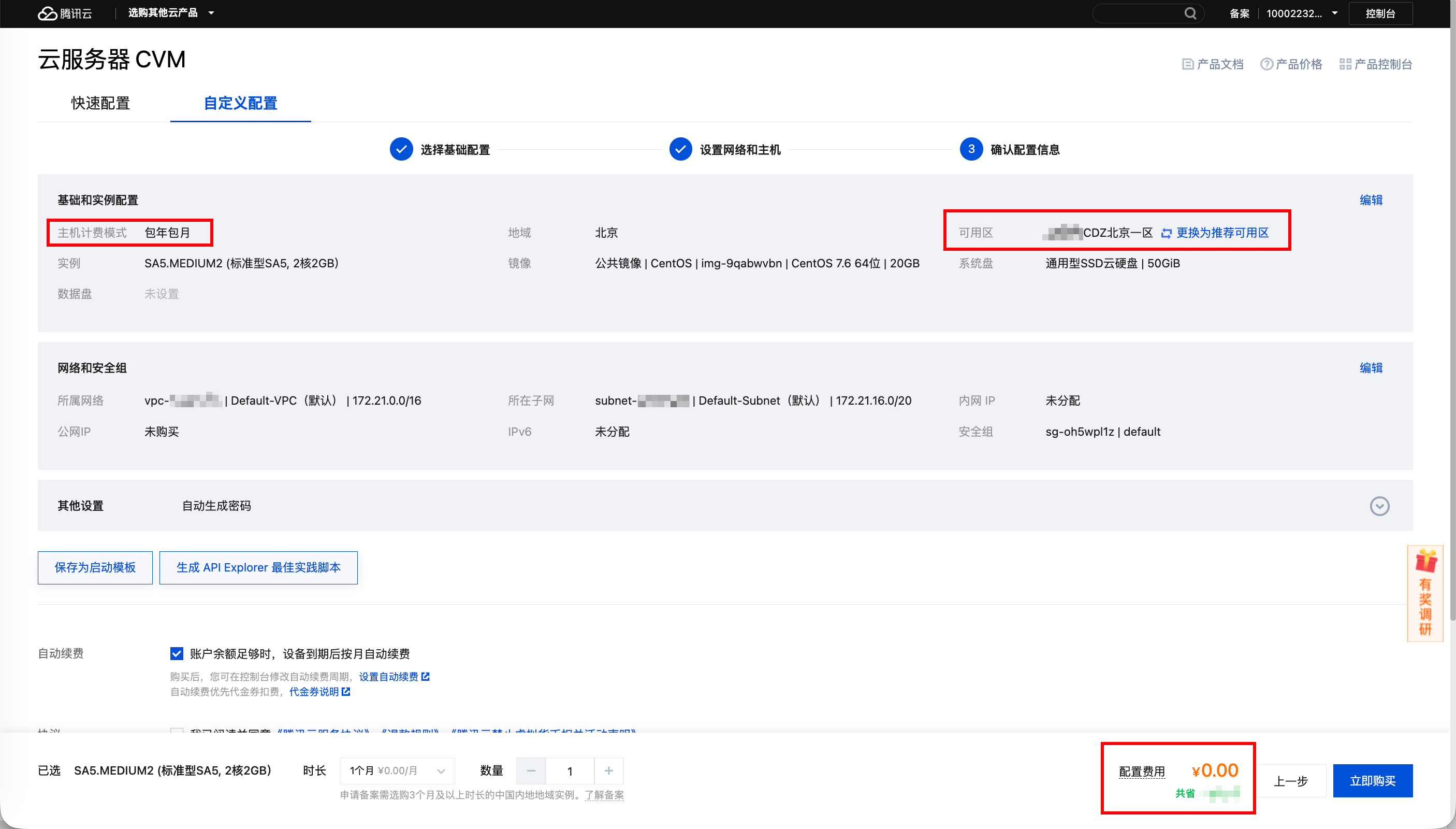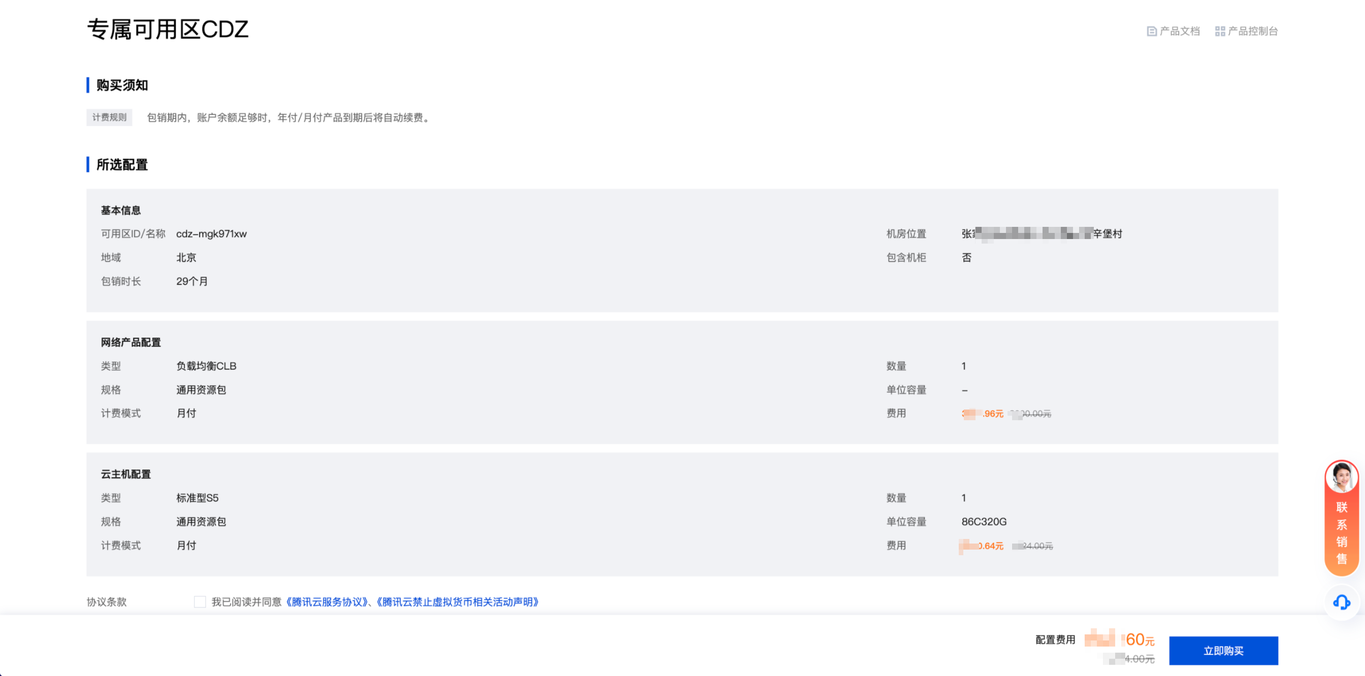 包年包月:在购买专属可用区中的CVM实例时,配置费用为0元。